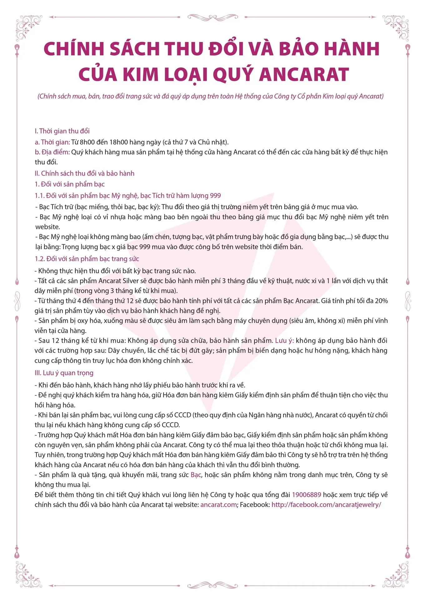Chính sách thu đổi và bảo hành của kim loại quý Ancarat: