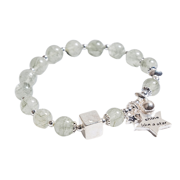 Vòng bạc mix thạch anh tóc đỏ nâu – đơn giản nhưng lại cuốn hút