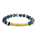 Vòng đá thạch anh tóc xanh phối Charm Chú Bình An tròn mix Lắc Vàng Tâm Kinh