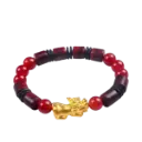 Vòng gỗ tử đàn phối charm tỳ hưu vàng 24k – Tiền tài – May mắn