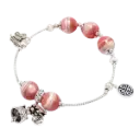 Vòng tay đá Đào hoa phối charm mèo chiêu tài