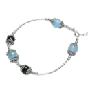Vòng tay đá aquamarine phối chiếc lá mix bạc