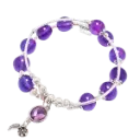Vòng tay đá thạch anh tím phối charm bạc mèo chiêu tài