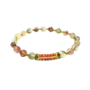 Vòng tay đá thạch anh tóc nâu cam phối Bi mix mèo chiêu tài