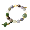 Vòng tay ngọc hòa điền phối đá thạch anh dâu xanh mix bạc