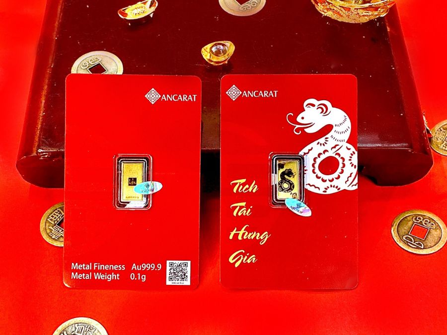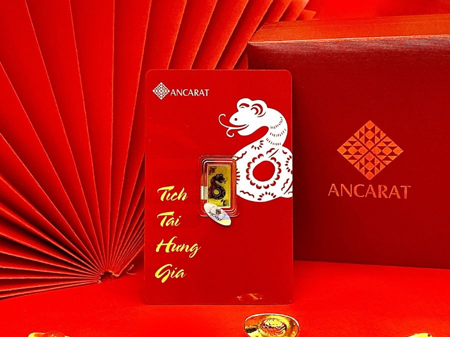 Thẻ ATM Kim Tỵ của Ancarat được thiết kế dựa trên hình tượng linh vật năm Tỵ – biểu trưng cho trí tuệ, sự khéo léo và tài lộc. Trọng lượng vàng 0,1gr tinh khiết được ép thẻ hiện đại, đảm bảo tính thẩm mỹ và độ bền lâu dài. Đây là sản phẩm hội tụ cả giá trị phong thủy lẫn giá trị tích trữ, khiến người nhận cảm thấy trân trọng ngay từ cái nhìn đầu tiên.