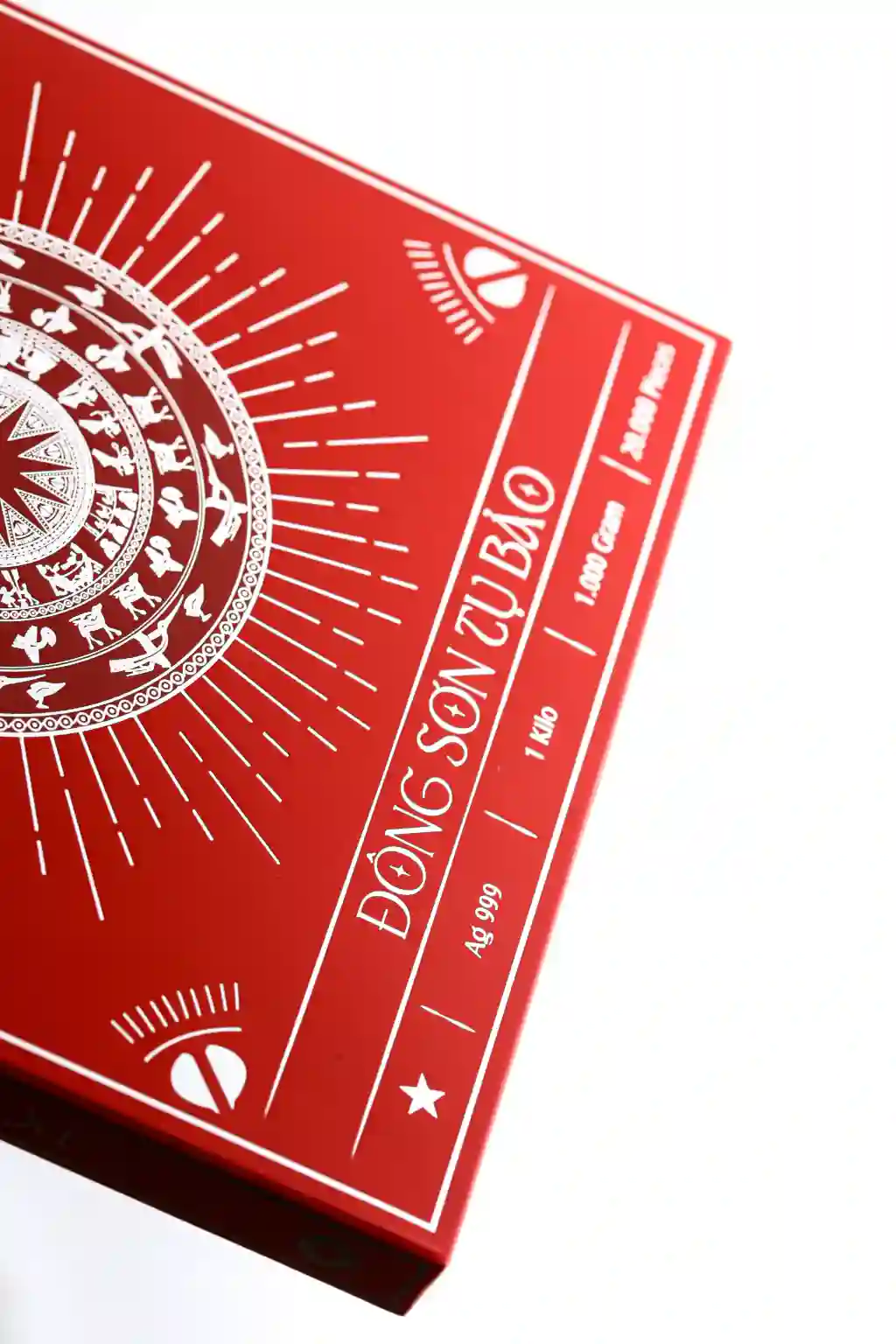 Các hoa văn được tạo hình bằng kỹ thuật dập nổi, mang lại độ sắc nét, chiều sâu và cảm giác chạm tay rõ ràng, tái hiện tinh thần trống đồng Đông Sơn một cách chân thực và trang trọng.